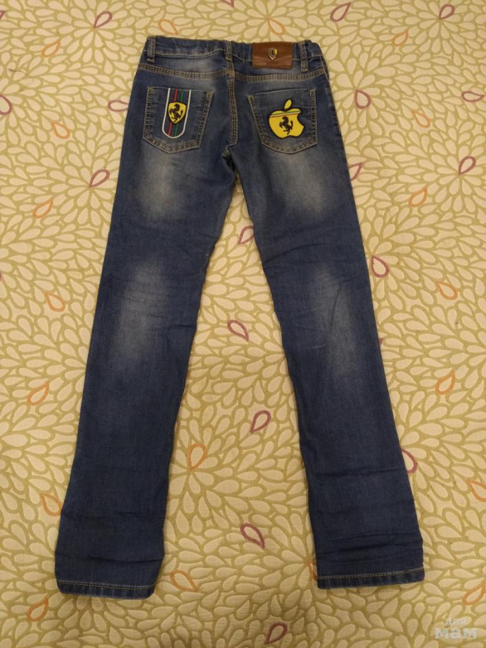2. Джинсы Турция. Маркировка 134, но маломерят ихорошо сидят при росте 125-130.Длину регулировала отворотами, смотрятся и сидят классно! Цена 700р.