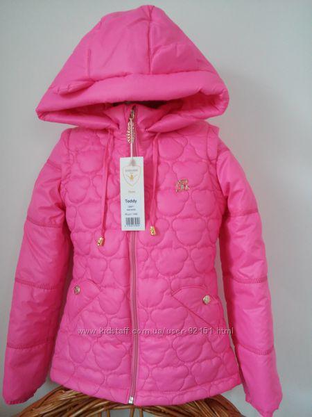 Куртка-жилетка новая, маломерит, размер указан 116 по факту на рост от 100 до 110, рукава и капюшон отстегиваются-на молнии, спинка удлиненная.