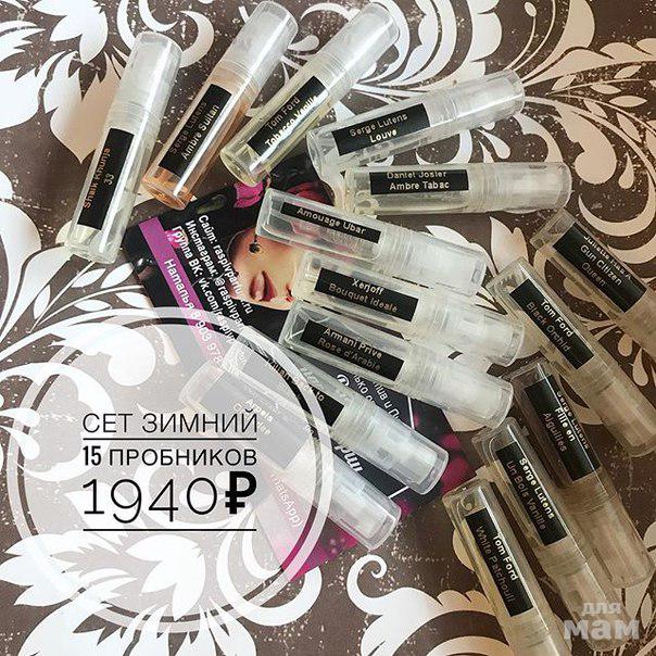 Сет ЗИМНИЙ из 15 пробников со спреем - 1940 руб. NEWEx Nihilo Amber Sky, Serge Lutens Ambre Sultan, Serge Lutens Un Bois Vanille, Daniel Josier Ambre Tabac, Amouage Ubar, Tom Ford Black Orchid, Tom Ford White Patchouli, Tom Ford Tobacco Vanille, Armani Prive Rose d'Arabie, Serge Lutens Fille en Aiguilles, Kilian Back to Black, Xerjoff Bouquet Ideale, Mancera Black Vanilla, Juliette Has A Gun Citizen Queen, Shaik Gold wom