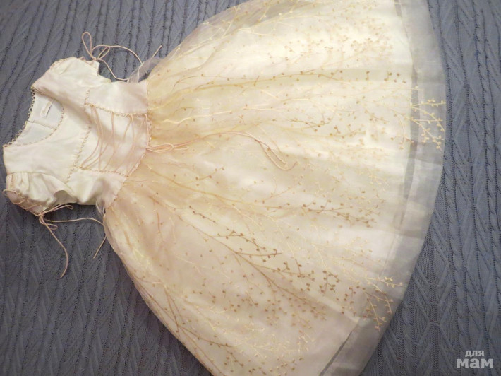 Красивое нежное платье, нарядное, кремовый цвет, неброская вышивка на юбке, шнуровка впереди и на рукавах - прелесть!)
