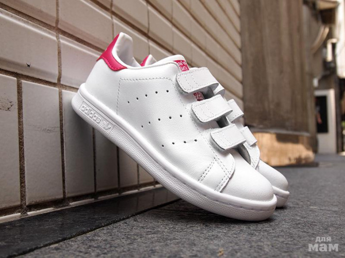 Детские кроссовки Adidas Stan Smith . Продолжение известной линейки Stan Smith теперь в варианте с ремешками-липучками. Подарите Вашему ребенку чувство комфорта и уверенности в своих силах. Ведь обувь выполнена из качественных материалов и отвечает современным стандартам. Благодаря этому кроссовки мягко повторяют все движения стопы. А специальная стелька OrthoLite® и перфорация по бокам, обеспечат приятный микроклимат внутри. Резина подошвы отличается своей прочностью и цепкостью.