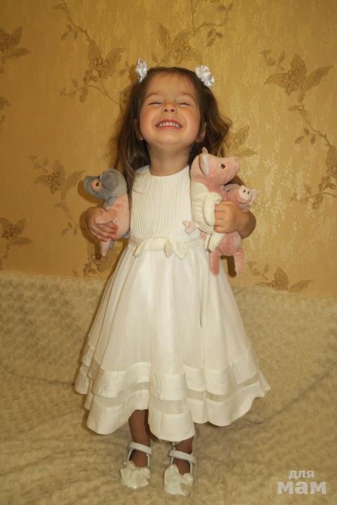 очаровательное платьишко для маленькой леди, покупали за 70 евро, после химчистки, на фото модельке 3г. Одевали 1 раз, от браслетика оставила пару зацепок на подоле, совсем не бросается в глаза.
