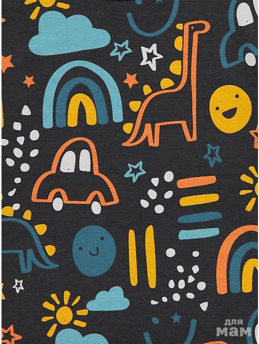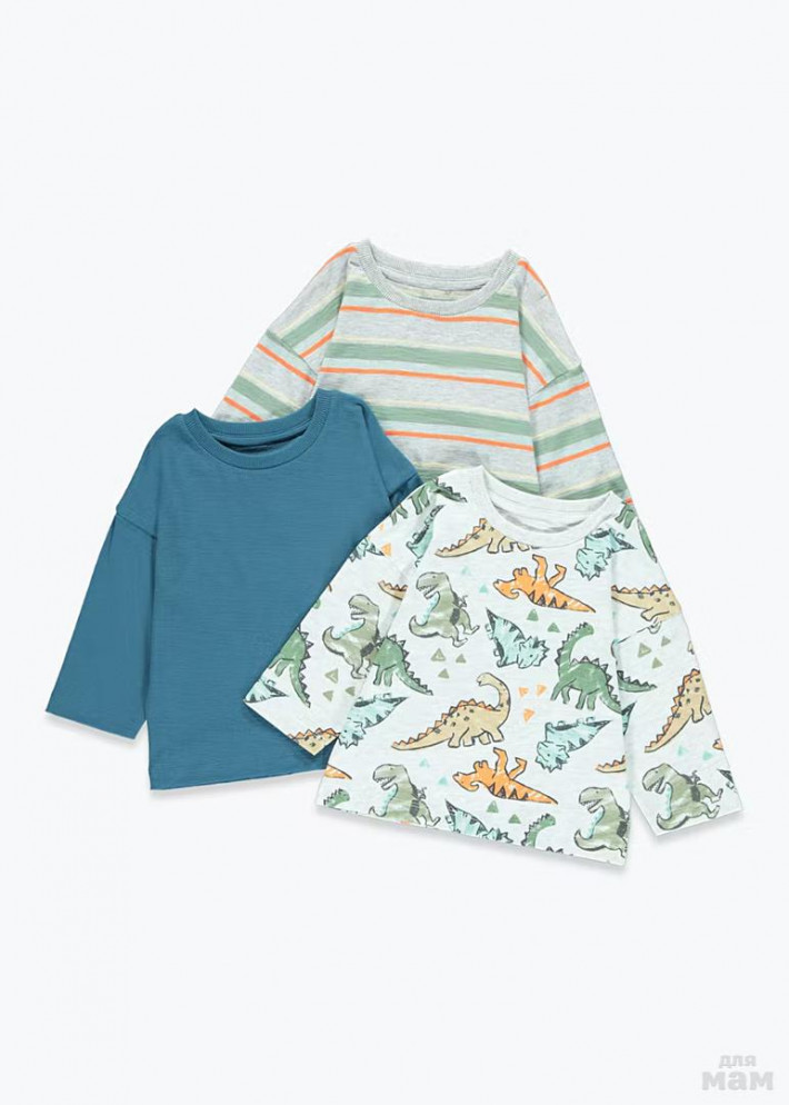 Кофточки Динозавры фирмы George. Темно-синяя с динозавром-наклейкой, ярко-синяя без рисунка, молочная вся в динозавриках и картинках, красная с радугой на груди, желтая с разноцветной надписью. Состав 100% хлопок,