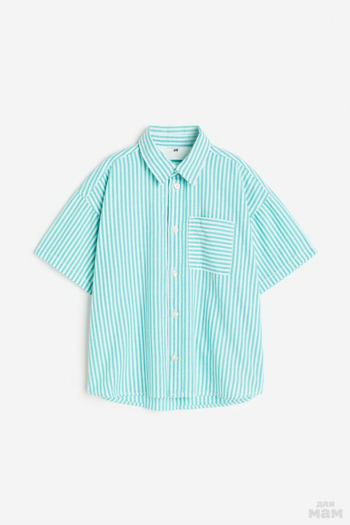Рубашка в полоску с коротким фирмы H&M. Свободного кроя, нагрудный карман, закругленный низ. Состав 100% хлопок,