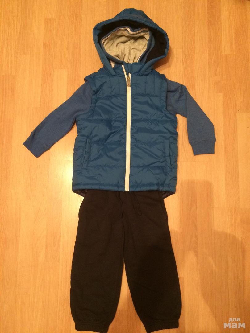добрый день. интересует жилетка синяя 900 руб которая. если есть утепленные спортивные штаны, либо из плотного трикотажа на 98, толстовка тоже теплая и тоже на 98.