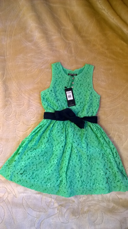 Очень нежный вариант для юной модницы - платье с контрастным пояском на талии, состав: верх 70% хлопок, 30 % нейлон, подкладка 100% хлопок