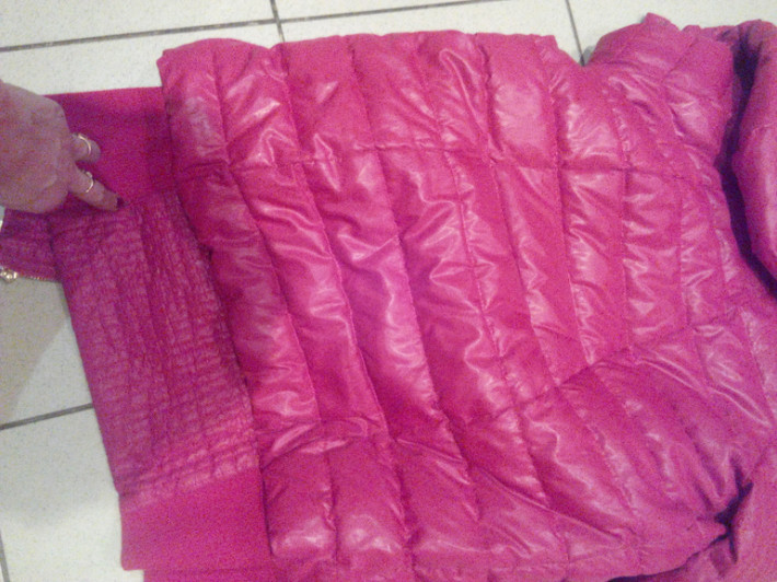 состояние хорошее единственный нюанс это дырочка сбоку на попе елезаметная т к там резинка( был пришита железная пластинка монклер)