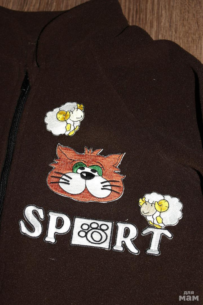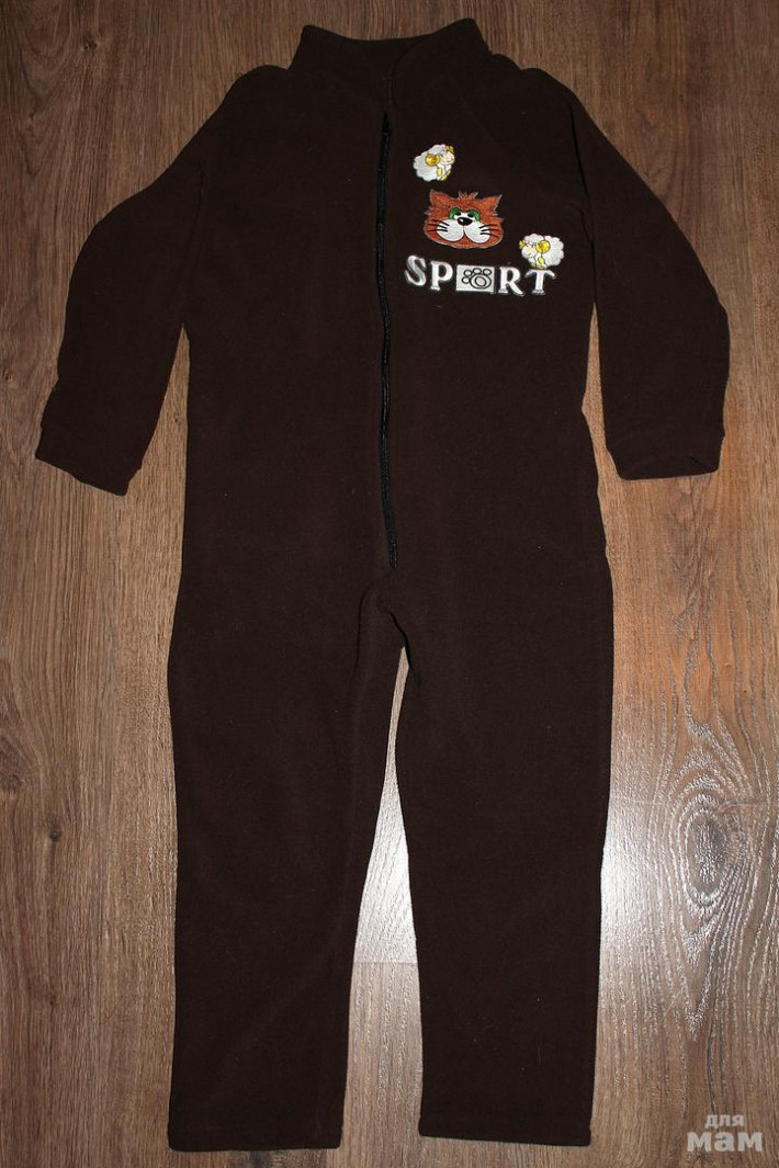 Новая, но без бирки. Цвет шоколад. Оригинальная вышивка, подбирала и пришивала (не термонаклейка, пришито крепко) специально в ателье. Флис очень плотный, не тонкий. Маркировка 116, но большемерит, до 120 см отлично подойдет.