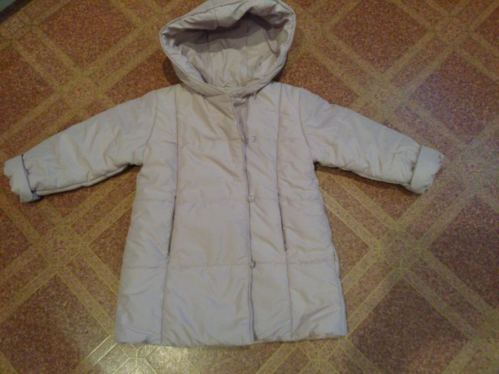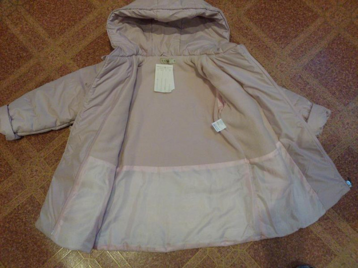 Новое пальто пудрового цвета на синтепоне. Подкладка- флис.Застёжка молния и пуговицы.