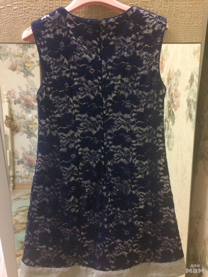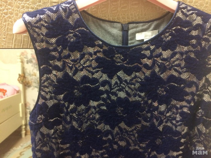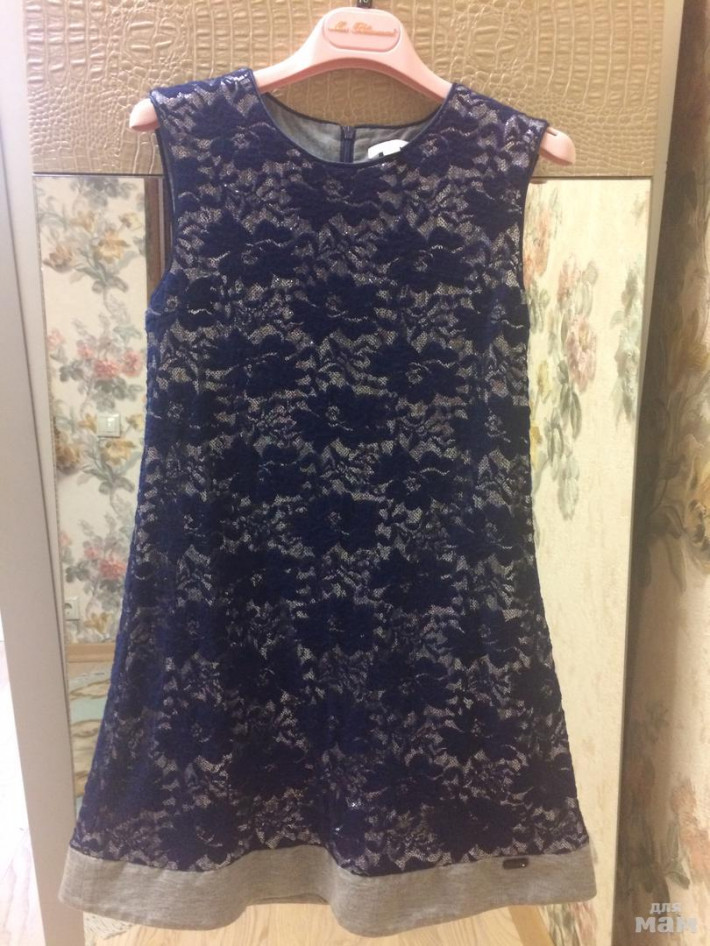 Подойдет на рост 134-140, внутри блестящее и сверху кружево синее,смотрится элегантно.