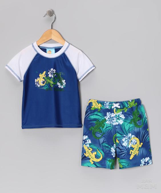 Navy Gator Rashguard & Swim Trunks