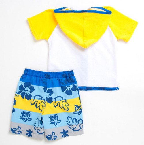 Яркий и функциональный пляжный костюм "Surfboard" защитит от ультрафиолетовых лучей, халатик с капюшоном согреет малыша после купания.