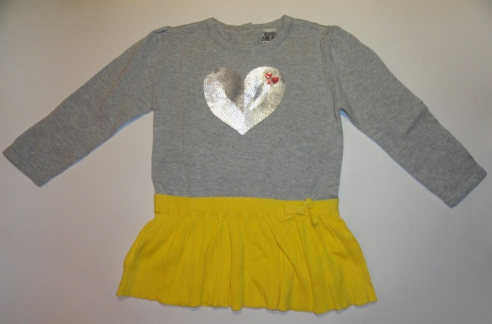 Трикотажное платье, вышивка пайетками в виде сердечка, плиссированная юбочка.