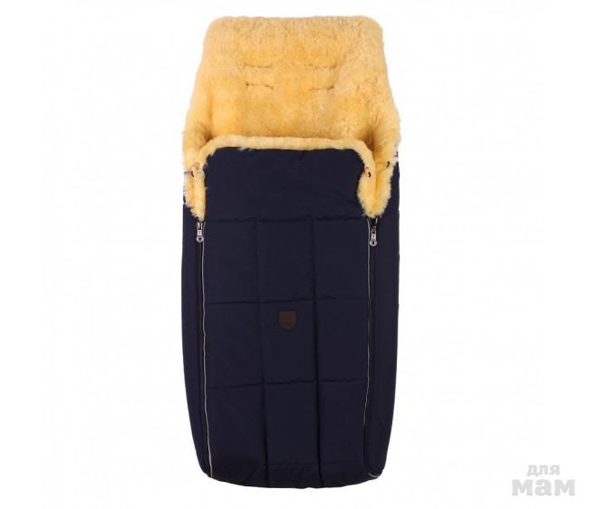 Конверт DAVOS имеет откидную часть из натурального овчинного меха. Если она будет застегнута на пуговицы, ребёнок будет защищен от ветра и сквозняка.