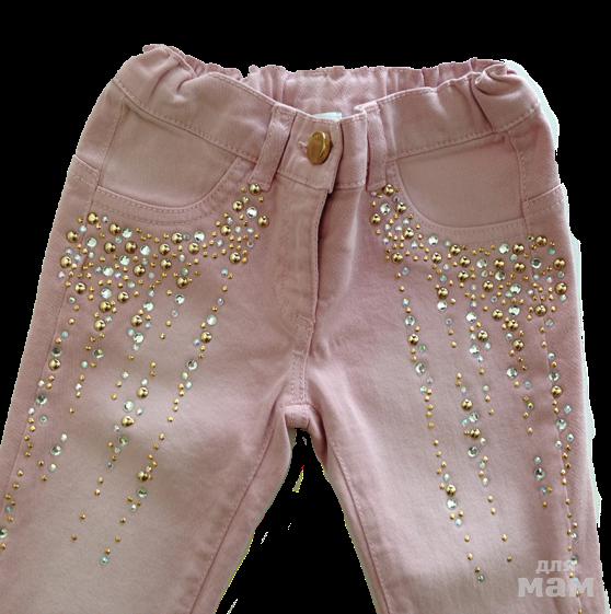 Розовые джинсы со стразами Microbe by Miss Grant, размер 5л., рост на бирке 104-110 см. Состав: 98 хлопок и 2% эластана. В талии есть утяжка. Новые, с биркой.