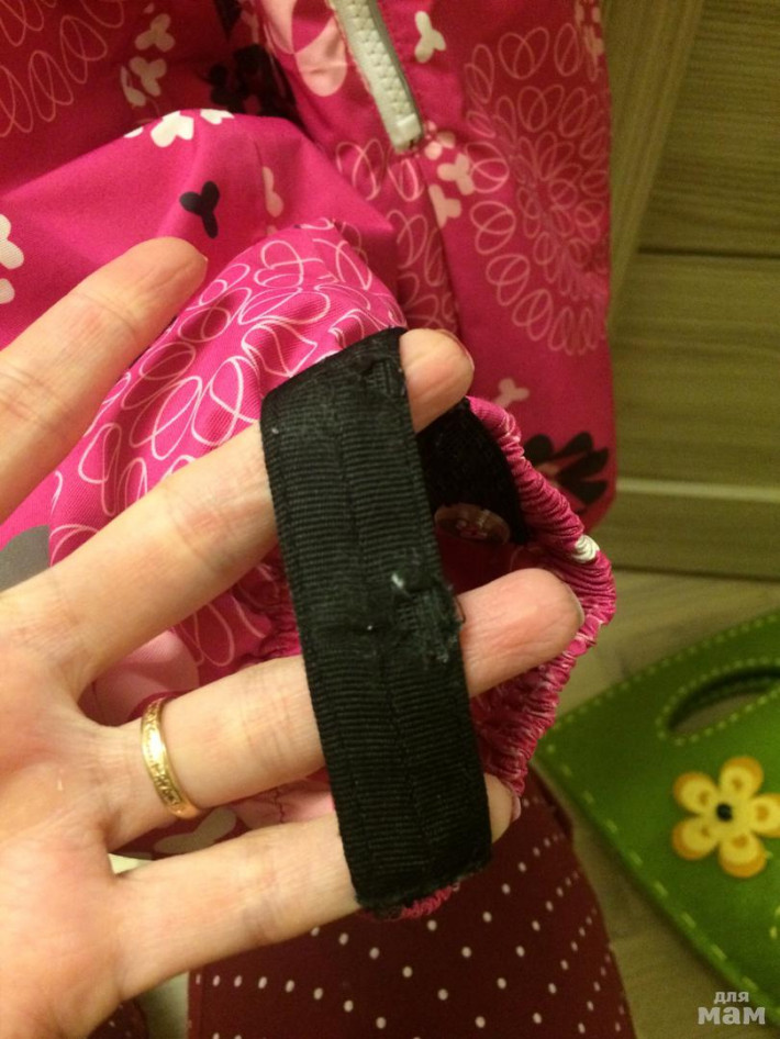ДВ! На самом комбинезоне потертостей нет. Только на штрипках (на фото видно). Что значит манжеты между ножек?) Он идёт +4-6 см.
