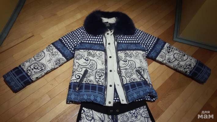 Пуховик и брюки на пуху " ROYSTUDIO" в стиле "ODRI"...Пуховик очень легкий, брюки спереди тоже как пуховик на гагачем пуху..Воротник из натурального меха (пушистый), отстегивается..Спереди на куртке молнии при желании можно сделать куртку просторнее..застежка на кнопках..Куртка была одета два раза, брючки новые..Состояние куртки новой....Красивый яркий принт...Отличное качество...Куртка раз.40, брюки размер 42..Куртка на наш М , можно и на S. Замеры по требованию...Продаю срочно недорого....