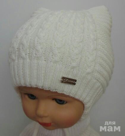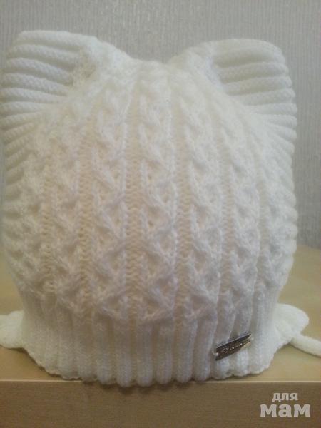 3.Двойная шапочка для малышек. Украшена весёлыми ушками на макушке.