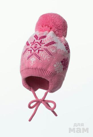Двухслойная шапочка для девочки на завязках. Вывязан скандинавский орнамент, большой помпон. Очень мягкая и теплая.Размер 44-46.
