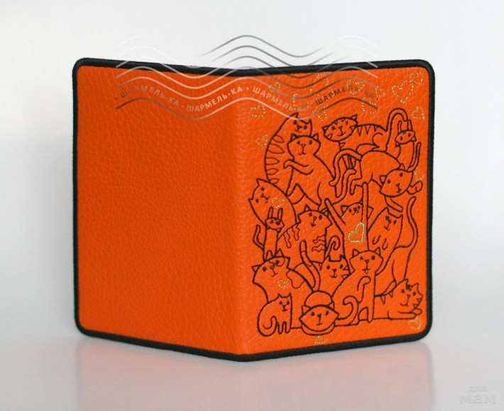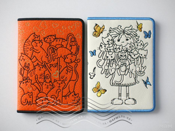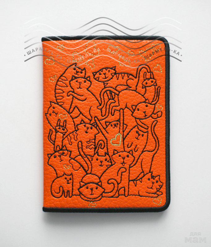 Эффектная обложка для паспорта с вышивкой о беспредельном кошачьем счастье :)))). По Вашему желанию могу вышить имя-фамилию или инициалы хозяйки обложки.
