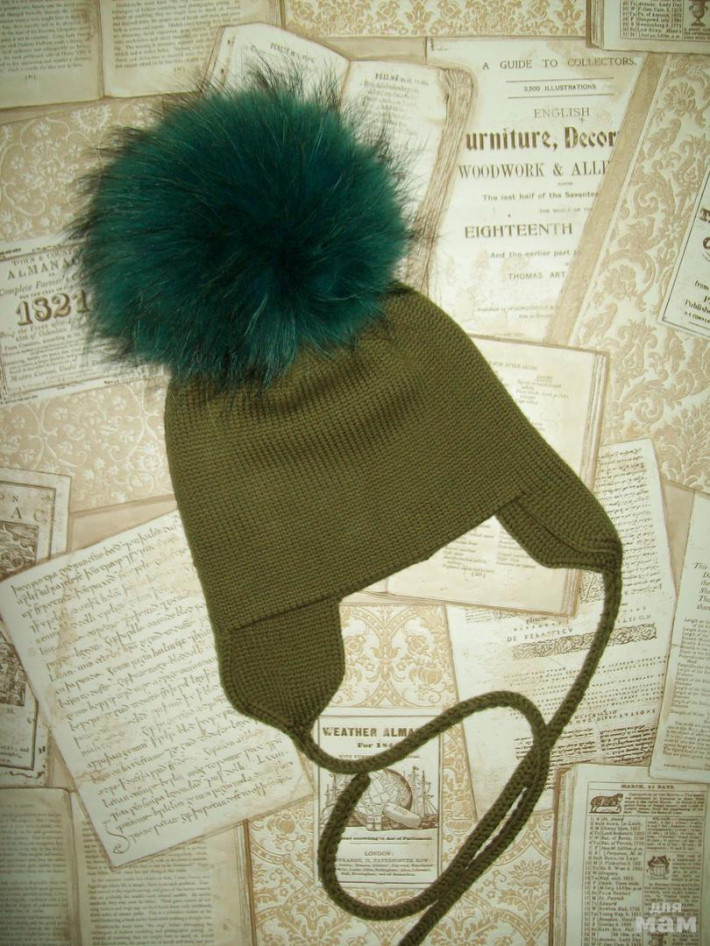 Меринос в два слоя. Унисекс. Помпон из финского енота 17 см. - 1200 р. ОГ 48-50