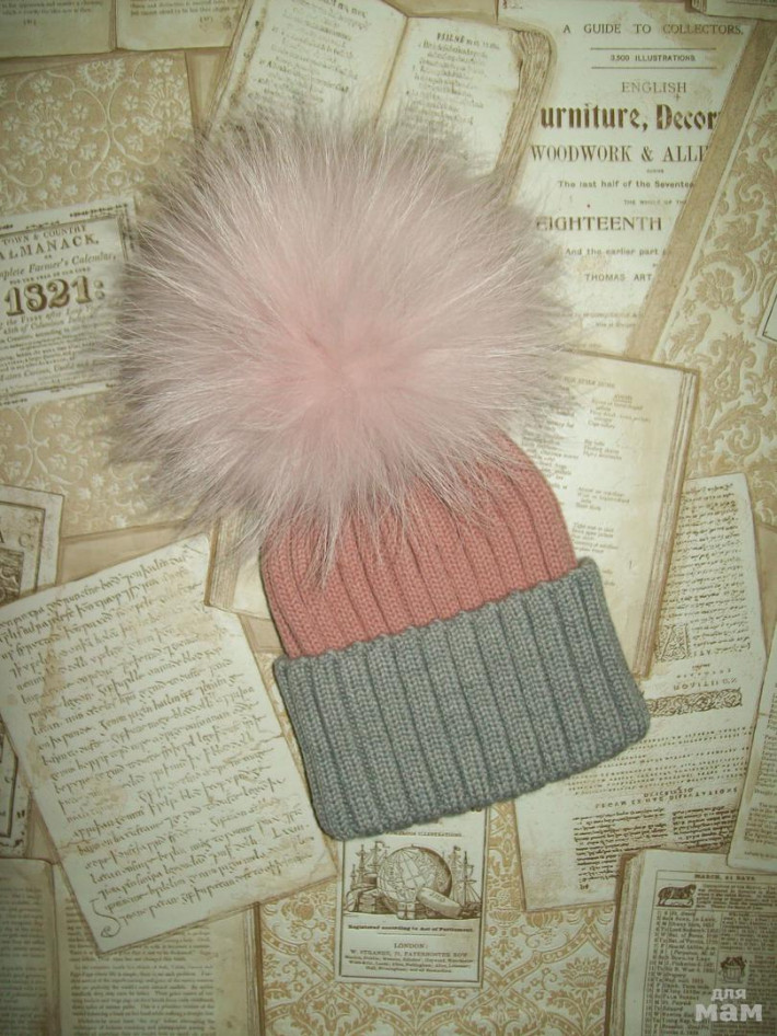 Пудрово-серая. Меринос в одну нить. Подойдет и на морозы. Плотненькая. Помпон более 20 см. финский енот. ОГ - 50-54 - 1700