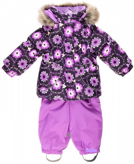 2. Тёплый зимний комплект для девочек LENNE (KERRY). Внешняя ткань - Актив гладкий. Подклад - 100% п/э. Количество утеплителя : куртка - 330гр; полукомбинезон - 180гр. Куртка: Капюшон съёмный с опушкой из искусственного меха. Внутренняя часть капюшона, ворота и манжетов - мягкий и теплый плюшевый подклад. Низ куртки присборен. Полукомбинезон с грудкой , на молнии. Бретели регулируются по длине. Имеются светоотражающие элементы. Внизу резинки на обувь. Температурный режим - от -5 до -30С.