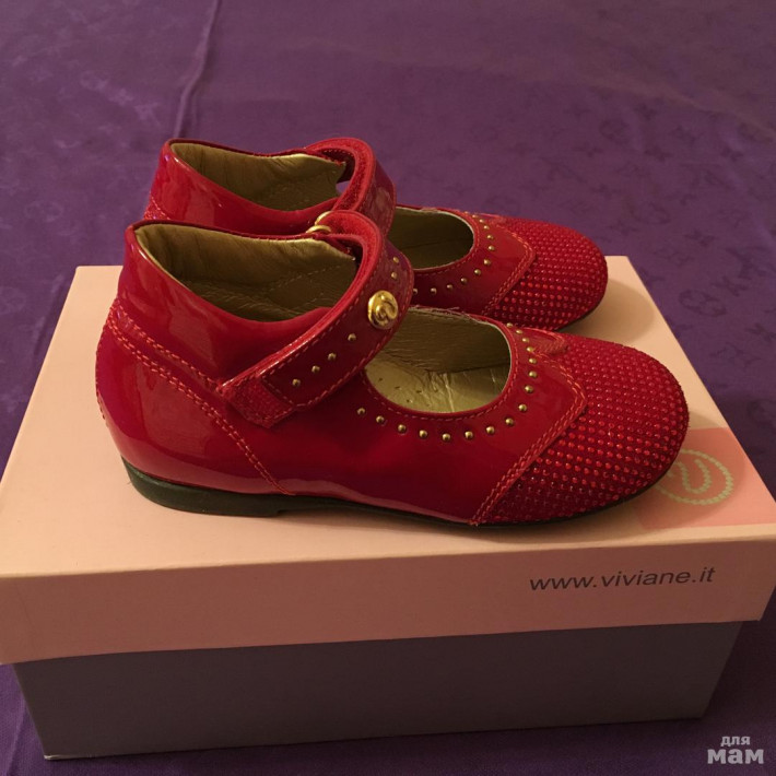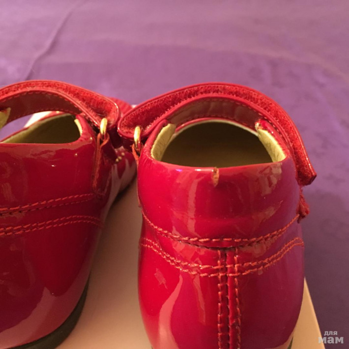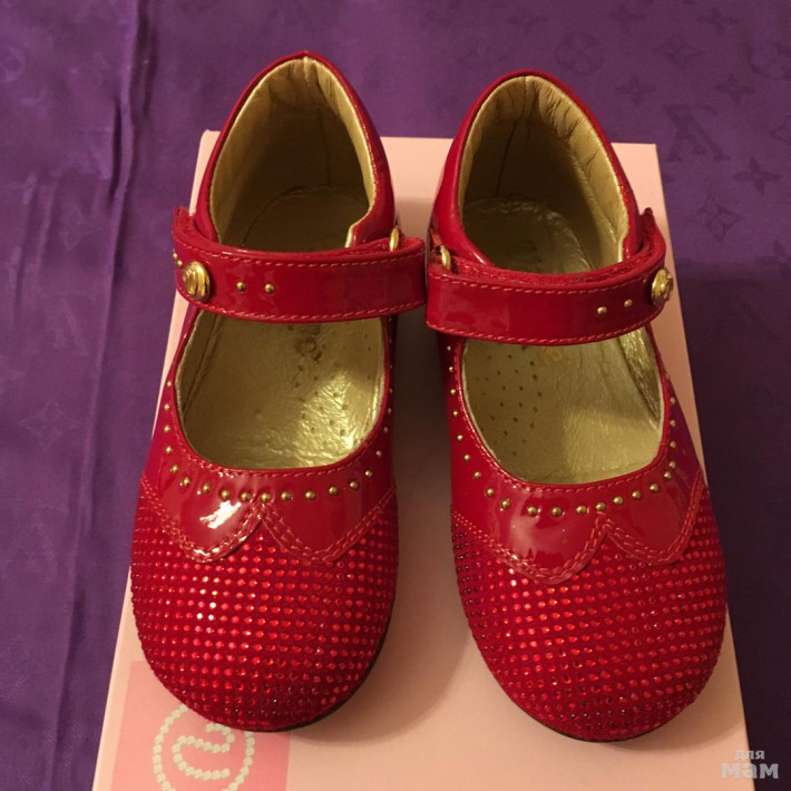 Шикарные туфли. Одели на Новый год на час. Нам к моему огромному сожалению малы в подъёме ((( Состояние отличное. Только когда начала фотографировать обратила внимание на пару маленьких нюансов, которые в носке будут абсолютно не заметны. На носе у правой туфли отсутствует один стразик, возможно его и не было и сзади лопнул лак. Все на фото. Отдаю за 2500. Фото со вспышкой и без.