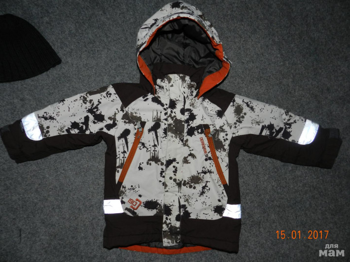 Маркировка 100 идет +6 см как и все подобные комбинезоны. Отличный вариант для сада, горок и активных прогулок. Состояние хорошее. Единственное нижняя кнопка на планке у куртки не работает, фото ниже. Можно отдать починить, но можно и без нее так как планка застегивается еще и на липучки. Шапочка и варьки в придачу.