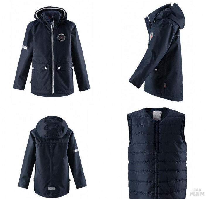 2.1 Куртка Reima, утеплитель 120гр., отстегивающаяся жилетка. Основные швы проклеены Водоотталкивающ, ветронепрониц, дышащий материал Подклад гладкий ПЭ. От 0С до +18С.
