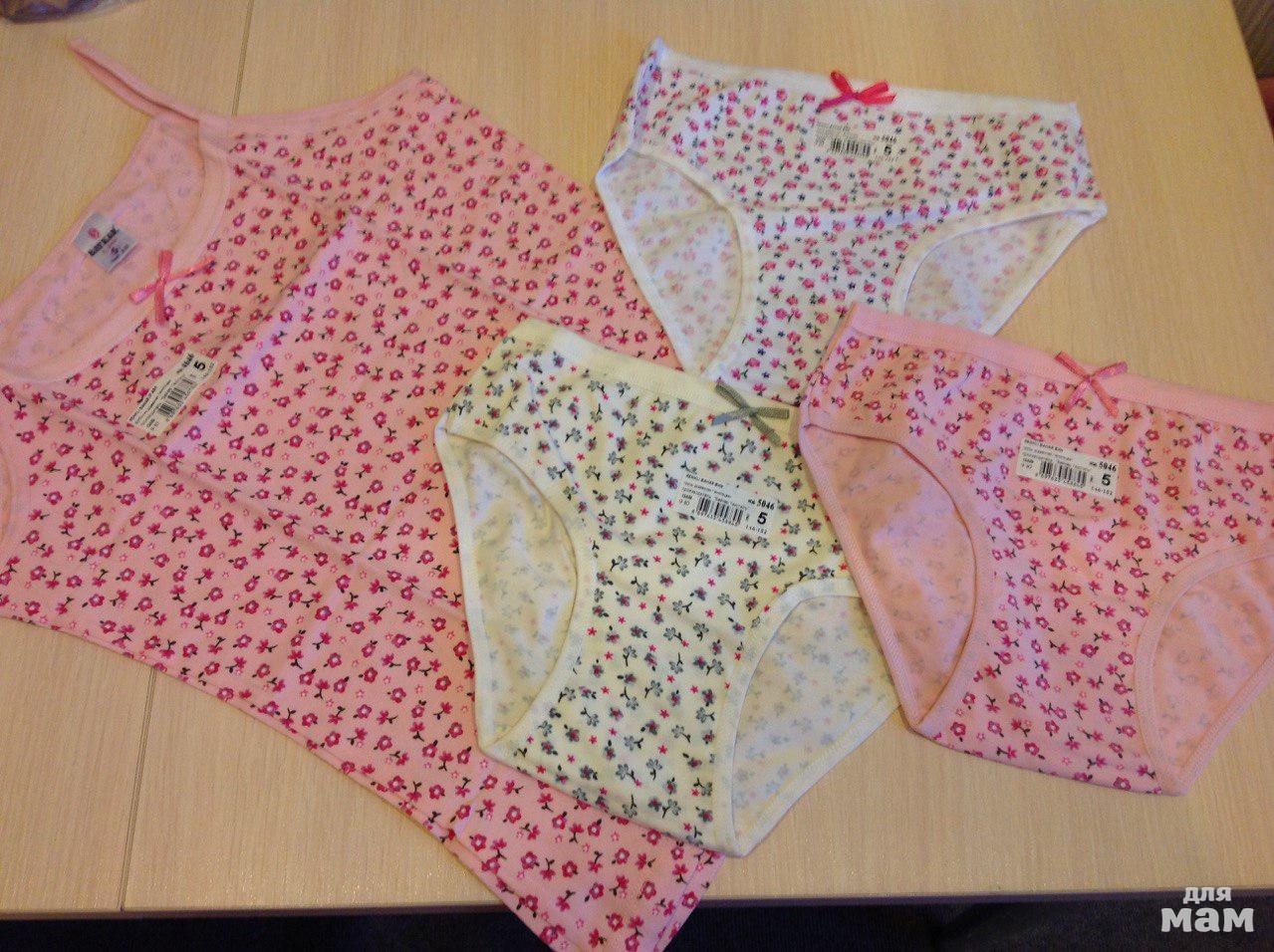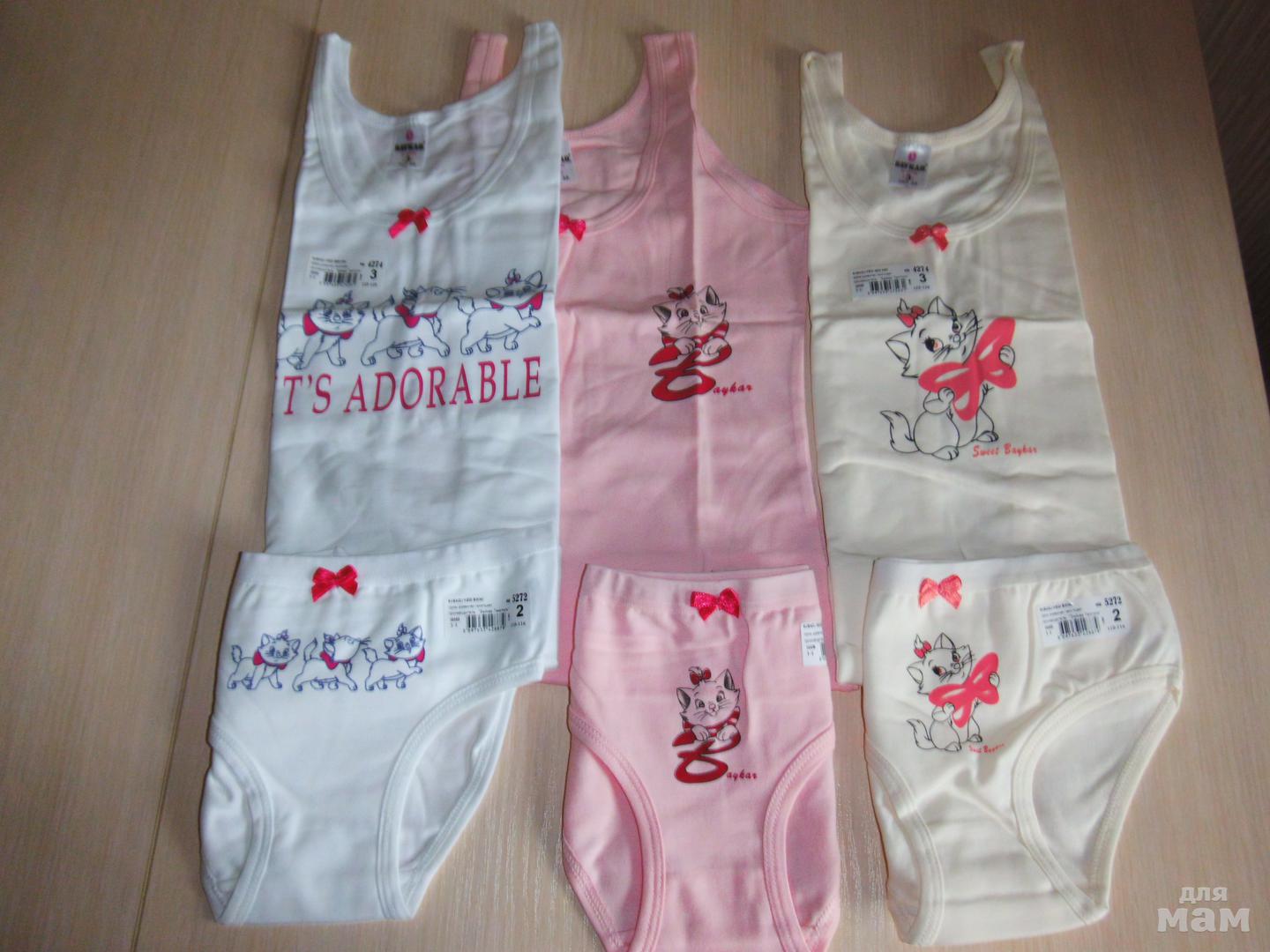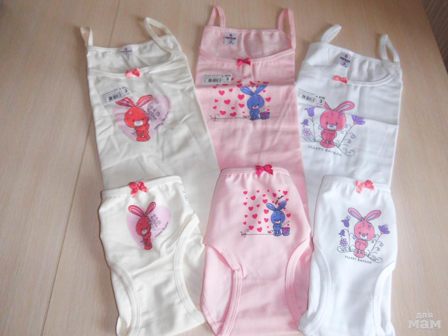 1) р.4 и р.5 - 1 майку (с узкими лямками) белую и 3 трусиков белых, р.4 - 2 трусиков розовых,