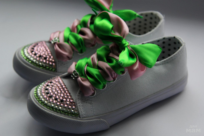 Кедики LaRedoute со стразами и атласными лентами 28 й р-р. ок 18 см