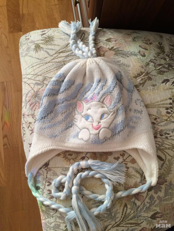 2. Шапочка с кошечкой, внутри хлопок ткань, снаружи хлопок вязаный - 300 руб. (48-50 размер)