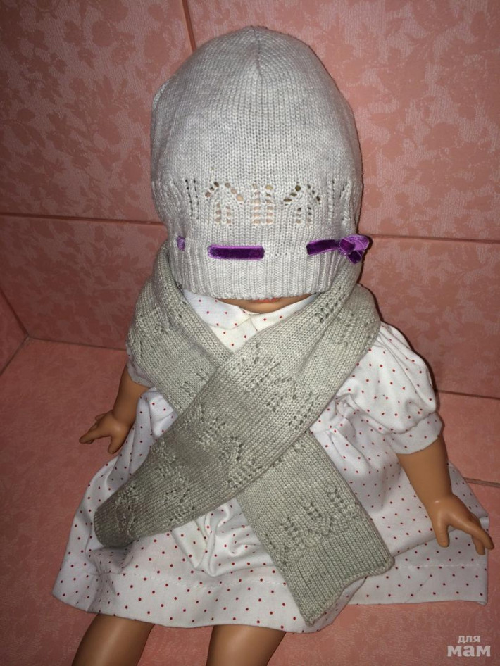 3. Комплект шапочка +шарфик на 46-48. Маркировка 2 годика - 400 руб. Хлопок.