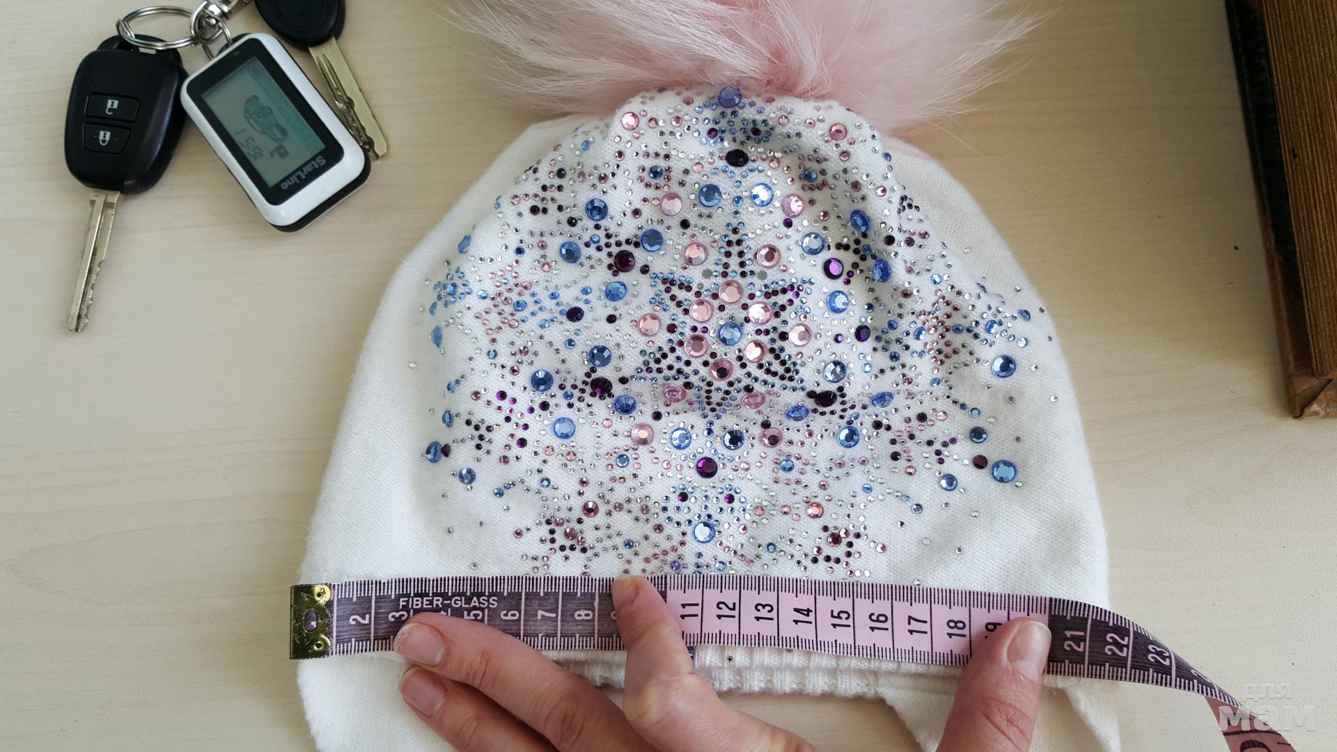 Можете померить высоту от помпона до конца и по ширине по самому краю, она хоть чуть тянется? Она видно не вязаная а полотно трикотажное да?