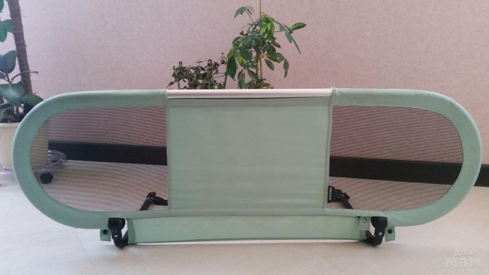 Крепление: устанавливается вдоль края кровати, специальными ножками под матрас создавая надежную опору за счет веса матраса. Дополнительная фиксация к основанию кровати с помощью ремней.