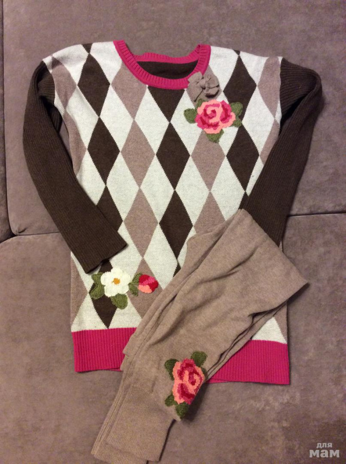 Здравствуйте,сет на первом фото в каком состоянии и цена?Свитер и лосинки теплые