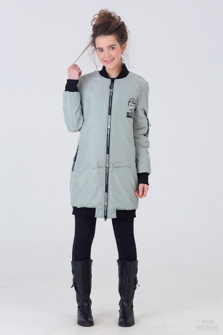 Куртка-парка прямого силуэта с трикотажный воротником. Центральная застежка на открытую тесьму-молнию. Рукав с трикотажными манжетами. На нижней части переда врезные карманы на молнии, низ оформлен трикотажной резинкой. Капюшон отстегивающийся на молнии.