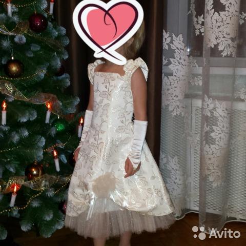 Красивое платье ждёт новую хозяйку.Размер указан 30. На рост 104-110см. На фото ребенок ростом 104см.Платье одето на праздник 2 раза.В комплекте с заколкой.3000руб.Одно платье стоило 4600р.