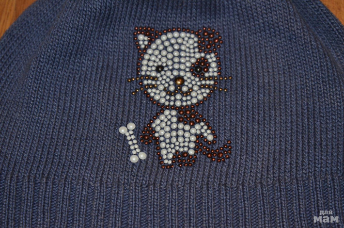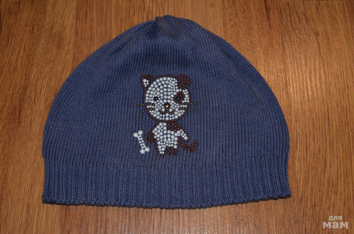 Синяя хлопковая шапка от Вики, итальянский хлопок.