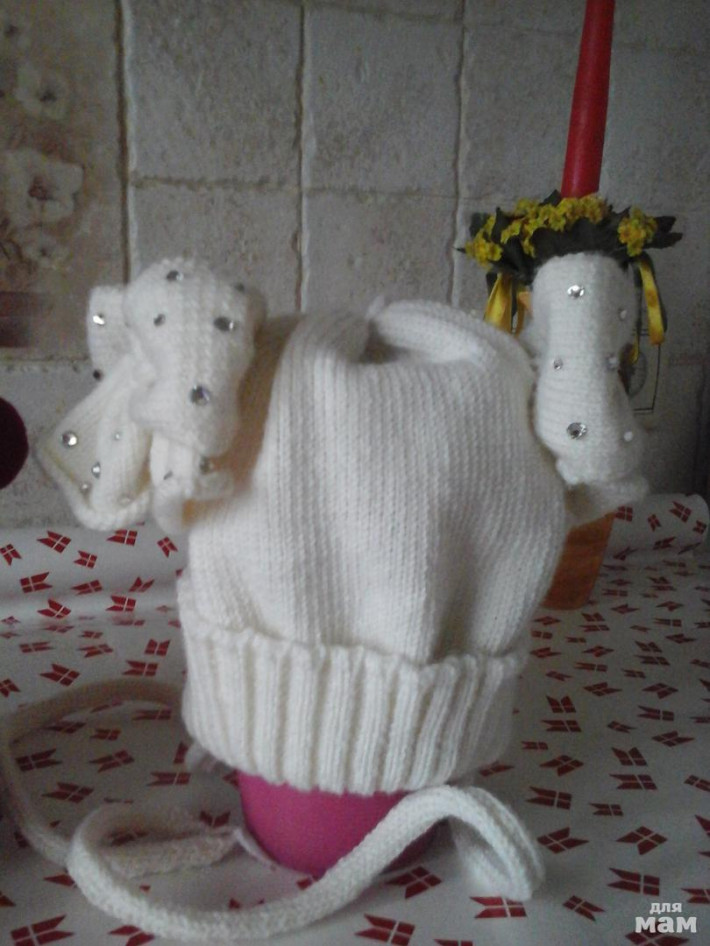 Шапочки связана из нежнейшего Итальянского мериноса класса ПРЕМИУМ. стразы СваровскиЭта шапочка связана для 3-х месячной принцессы