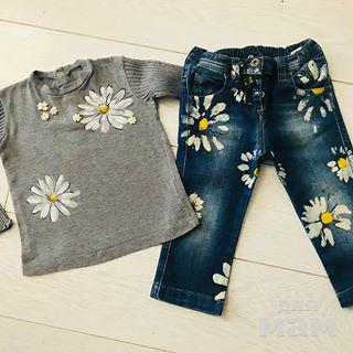 Хитовая коллекция ромашки от D&G джинсы, лонг, рубашка маркировка 9-12 мес, но все большемерит, носили от роста 80. Лонг с собачкой D&G в подарок к ромашкам за все
