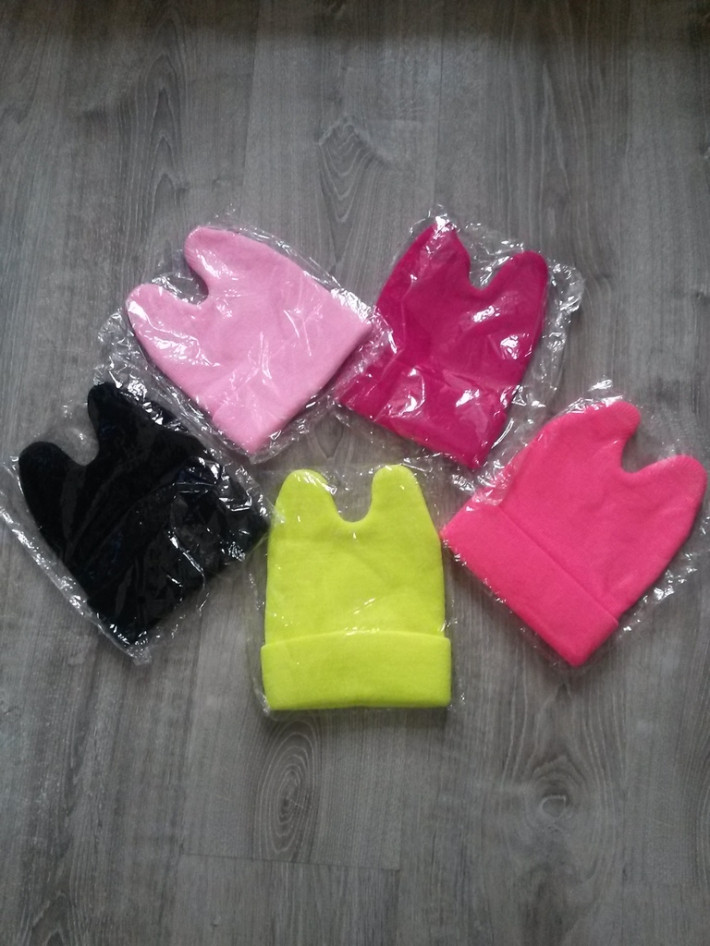 Шапочки с рожками. Новые . размеры 46-48 - желтая, оранжевая, лайм, фуксия . 48-52-оранжевая, синяя, лайм, серая. С резиночкой внизу. Фото выше. - 190 р.