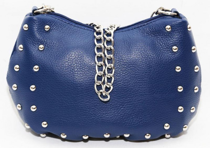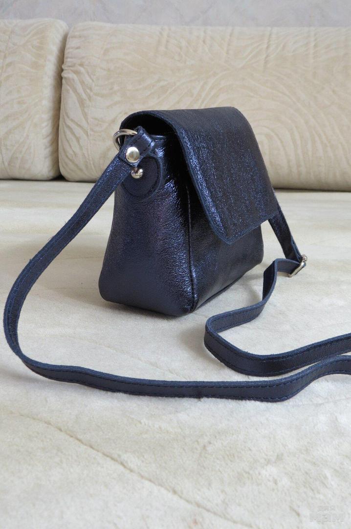 15.цена 3950 руб, натуральная кожа. Размер 19*18*9 см. Внутри одно отделение. карман на молнии. Цвет темно синий металлик. Сумка закрывается на молнию.