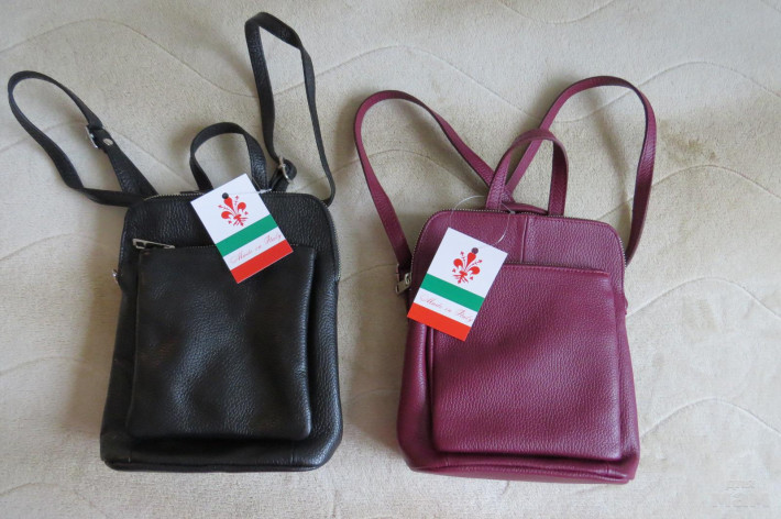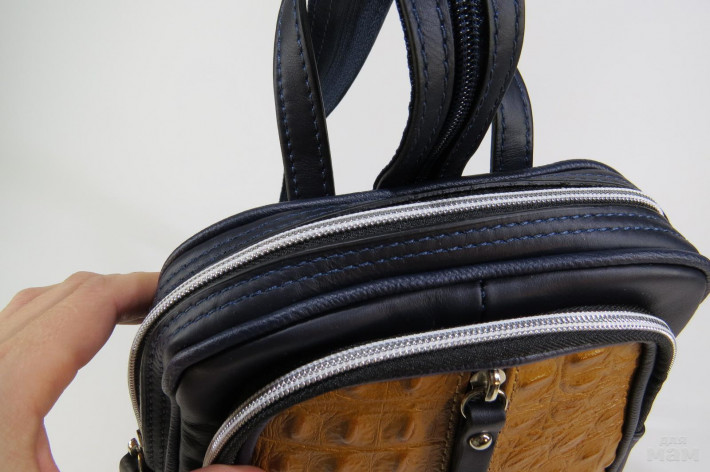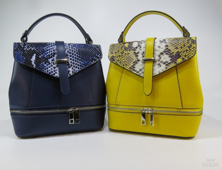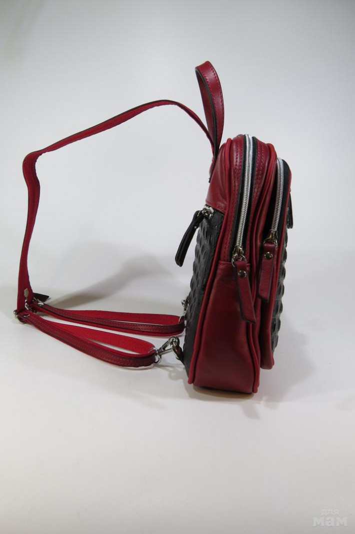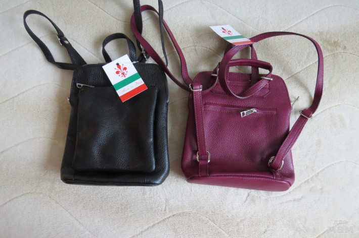 1 - сумка рюкзак. Цена 4950 руб. Размер 25*23*8 см. Спереди и сзади карман на молнии. Внутри 1 отделение, 1 карман на молнии.