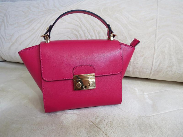 201 в наличии розовая, внутри одно отделение и боковой карман на молнии, длинный ремешок, 24*26*16 см цена 5000 руб