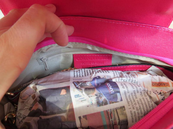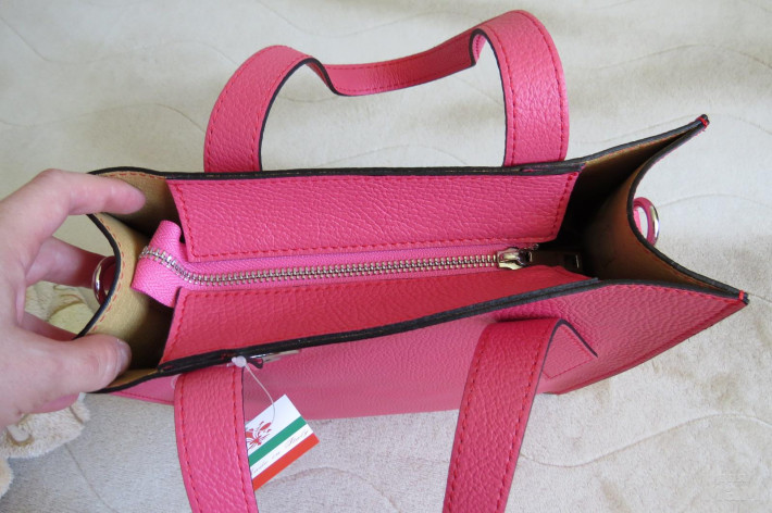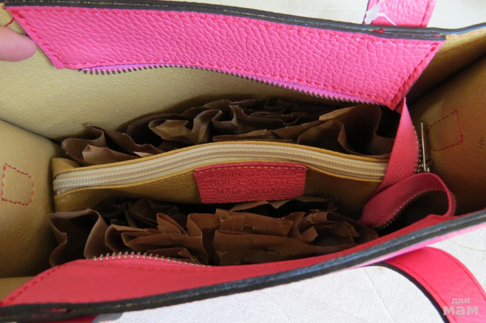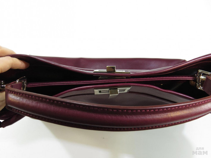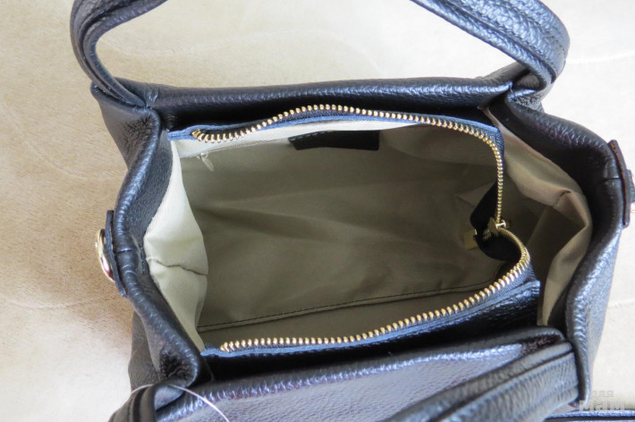 86 размер 32*25*9 см, короткий ремешок 34см, есть так же в комплекте длинный, цена 5000 руб. Внутри 2 отделения разделенные карманом на молнии, боковой карман на молнии.