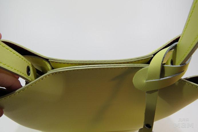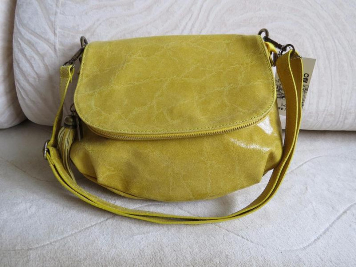 47 в наличии "пельмешка" цена 4500 руб, размер низ 28 см, верх 18 см, высота 18 см, дно 12 см. Внутри одно отделение, карман на молнии. Сумка форму держит. Ремешок длинный, 130 можно отрегулировать по длине (обрезать под себя) или завернуть. Можно совсем снять.