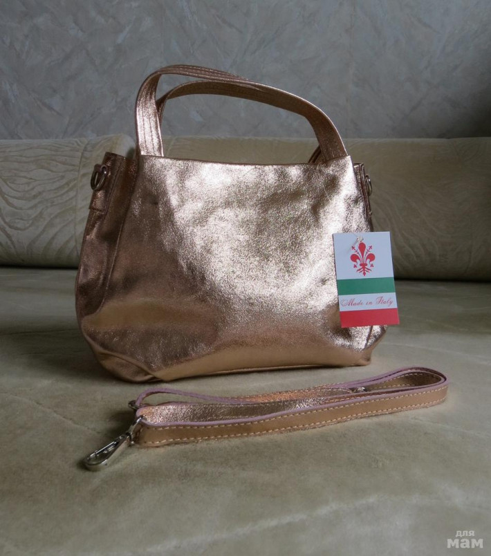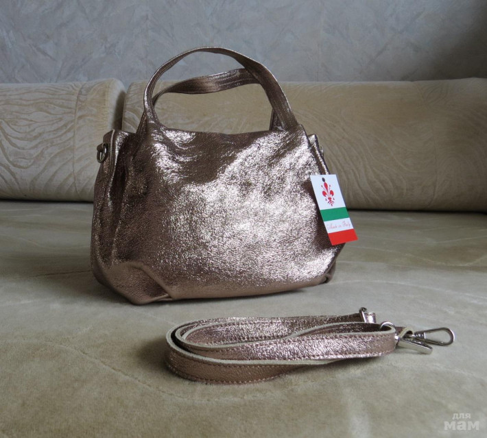 136 бронза, большая, 5700 руб, размер дно 15, высота 32. Ширина по низу 36, верх 48, длинный ремешок в комплекте. Внутри 1 отделение, 1 карман на молнии и 1 без