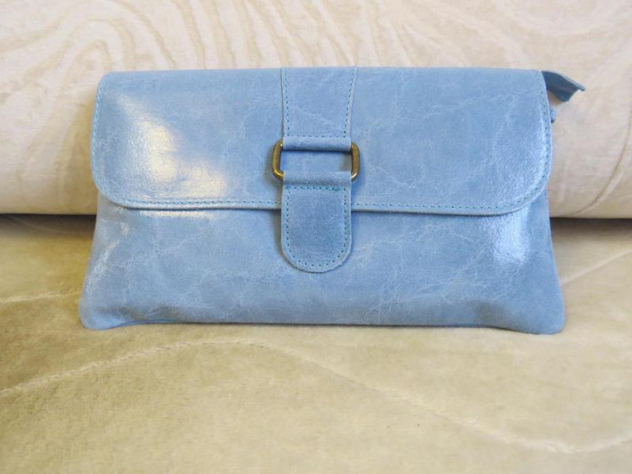 185 голубая 26*17*7 см, внутри одно отделение, 1 карман на молнии, 1 короткий и 1 длинный ремень 3700 руб